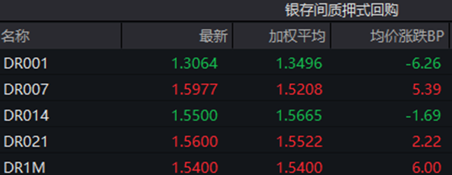 银行间回购定盘利率多数上涨。FR001跌5.0个基点报1.41%;FR007涨8.0个基点报1.58%;FR014涨1.0个基点报1.58%。