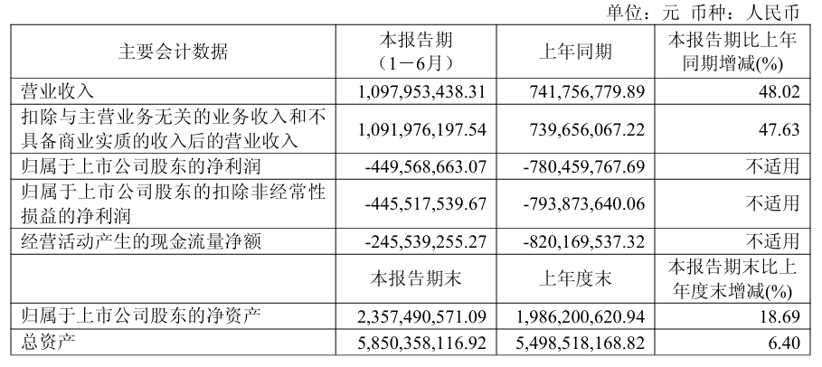 财报显示,今年上半年,该公司实现营业收入10.98亿元,较去年同期增长48.02%;归母净利润-4.50亿元,上年同期为-7.81亿元,同比减亏42.40%;扣非净利润-4.46亿元,上年同期为-7.94亿元,同比减亏43.88%。绩后荣昌生物港股股价高开近4%。