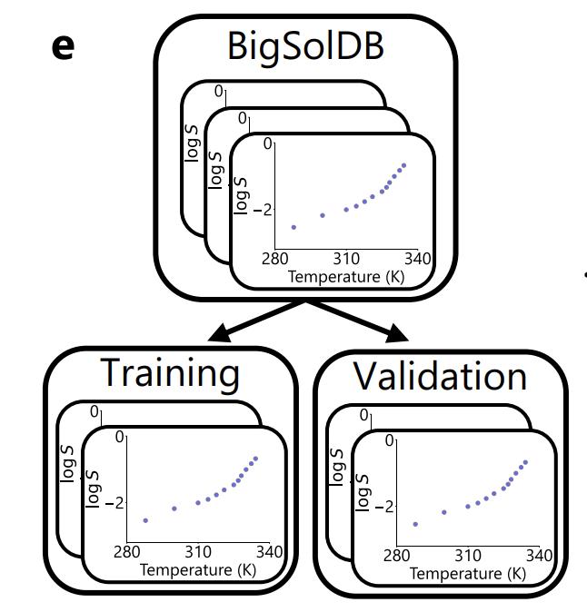 该研究的核心数据来源为 BigSolDB,该数据库系统性收录了有机固体在多种有机溶剂及不同温度条件下、接近沉淀极限的溶解度数据,为通用预测模型的训练提供了关键支撑。