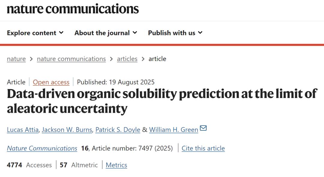 相关研究成果以「Data-driven organic solubility prediction at the limit of aleatoric uncertainty」为题,发表于 Nature Communication。