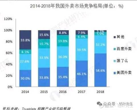 为了了解这段历史,我翻阅了一些资料,逐渐了解了那段历史。图1是2014年至2018年我国外卖市场各主要参与者市场份额的变化。