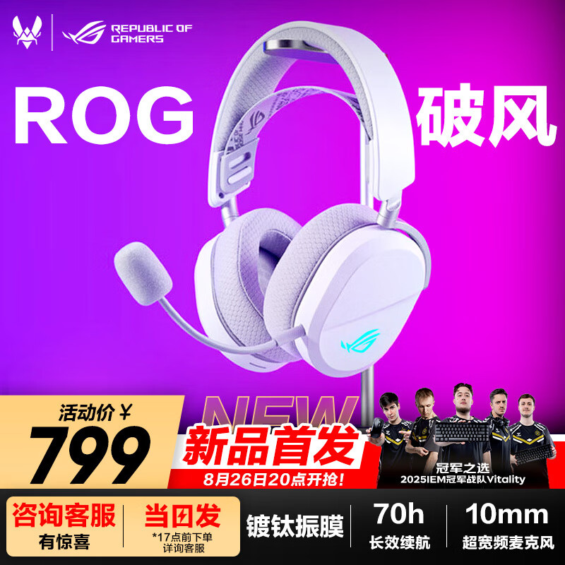 IT之家 8 月 26 日消息,华硕宣布 ROG 破风月耀白耳机 8 月 26 日 20:00 正式发售,首发直降 100 元,到手价 799 元。