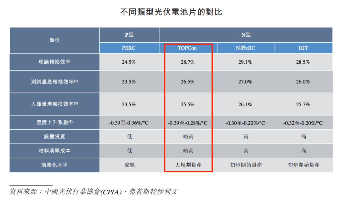 其中也得益于N型TOPCon电池片的部分生产设备与其现有的P型电池片生产线兼容,因此转型速度更快且成本相对较低。