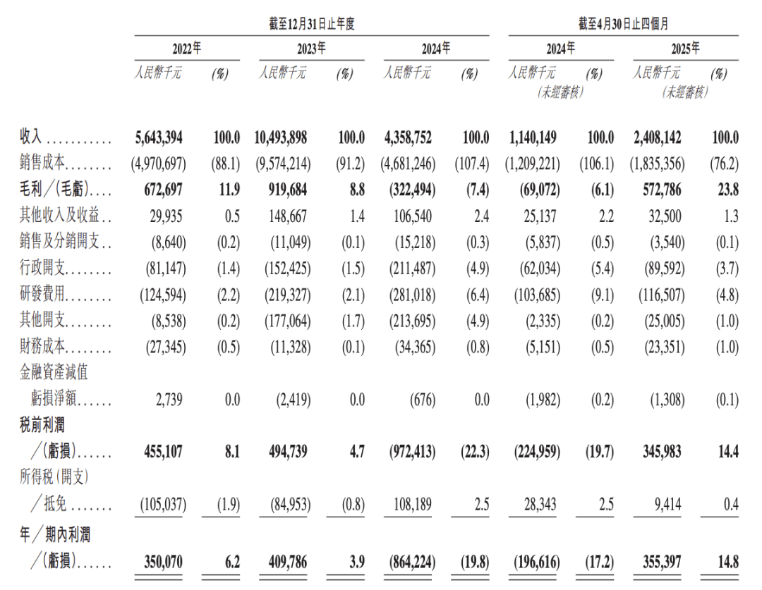 报告期内,公司的营收分别约为56.43亿元、104.94亿元、43.59亿元及24.08亿元。同期的年内净利润分别约为3.5亿元、4.1亿元、-8.64亿元及3.55亿元。