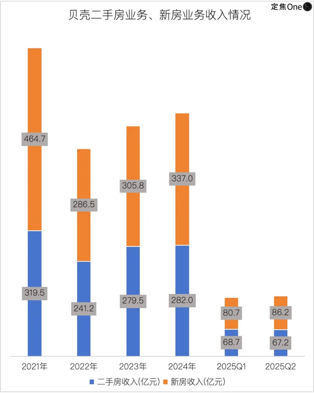 2021年至2024年,存量房业务收入不仅没有增长,反而下降11.7%。2025年前两季度,其收入占比继续下滑。