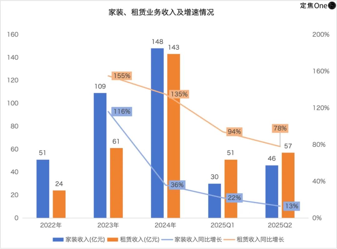 2025年第二季度,家装和租赁业务合计占总收入的40%,相比2022年有大幅提升。进一步细分,2024年家装业务的贡献利润率是30.7%,租赁业务为5.0%。