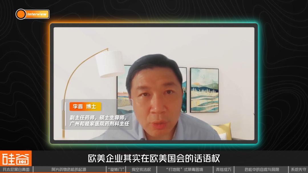 欧美企业在欧美国会的话语权是很强的,比如礼来,不是说礼来公司不好,因为礼来的市值能达到8000多亿(美金),它有足够的话语权在某些方面来动员国会,(使得)在某些议案方面有利于企业本身的产品的销售。不一定是(只)针对阿片类(药物)。有一些企业,比如说普渡制药,它针对自己生产的这些止痛药,它会想办法撬开一个角,让自己的药品多销售出去。