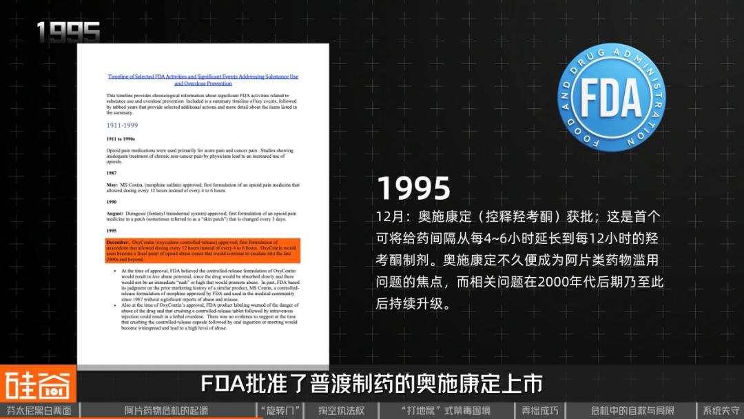 1995年底,FDA批准了普渡制药的奥施康定上市。当年审批奥施康定的FDA官员柯蒂斯·赖特(Dr. Curtis Wright),在药物获批后一年便转头离开FDA加入普渡制药,年薪高达40万美元,与在FDA的工资相比涨幅高达300%。