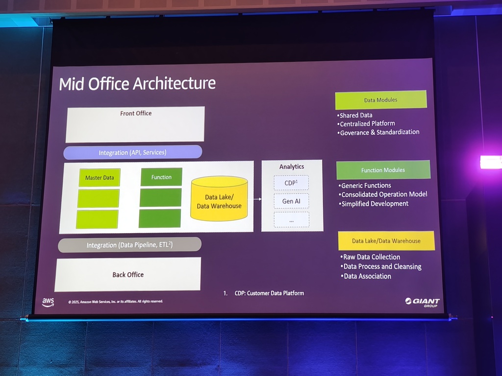 近期一場活動中,自行車製造巨頭巨大機械資訊經理林傑文揭露,自家如何靠打造雲端資料中臺,來支援多品牌、多業態集團業務的供應鏈管理,以及使用者體驗塑造。