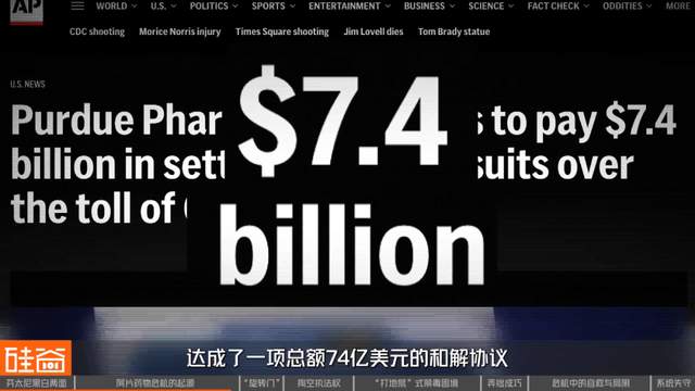 而在今年1月一项由美国多州联合提起的诉讼中,包括加州在内的各州总检察长宣布,他们与普渡制药及其所有者萨克勒家族达成了一项总额74亿美元的和解协议:其中萨克勒家族将在未来15年内支付最高65亿美元,普渡制药则将在法院批准后支付近9亿美元。