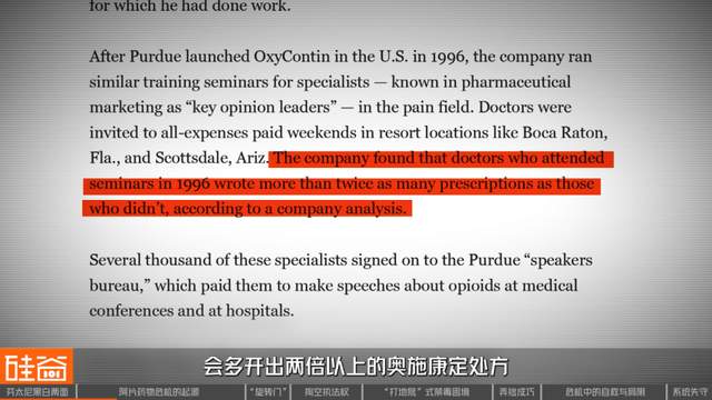有分析显示,参加1996年研讨会的这些医生和没参加讲座的医生相比,会多开出两倍以上的奥施康定处方。