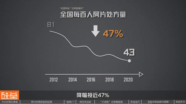 2010年前后,美国政府开始严格管控处方阿片类药物,医生开止痛药的“阀门”被迅速拧紧。全国每百人对应的阿片处方量从2012年高峰时的约81份骤降至2020年的43份左右,降幅接近47%。