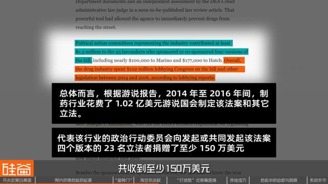 面对阿片类药物的泛滥,DEA的执法力度却显得非常疲软。这背后的一个重要原因正是制药产业的游说和政治施压。