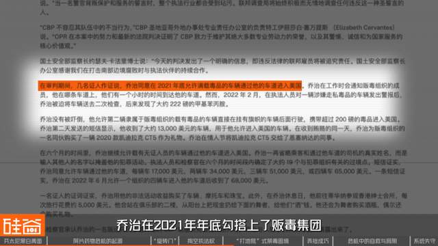 在21年底,乔治勾搭上了贩毒集团,随后他会提前告诉毒品走私团伙自己的值班时间、所在车道,并提醒他们在一小时内将车辆开过来。