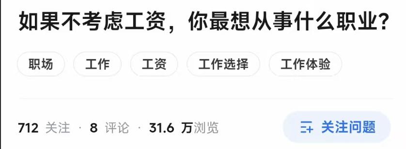 网上曾经有人问“如果不考虑工资,你最想做什么?”