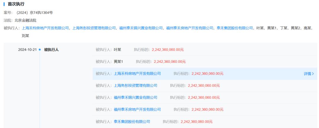 2021年8月5日,北京金融法院查封、扣押、冻结上述被告名下价值16.84亿元财产,并于2024年10月21日对案件进行了首次执行,执行金额达到了约22.42亿元。但是最终执行效果如何,尚不知晓。