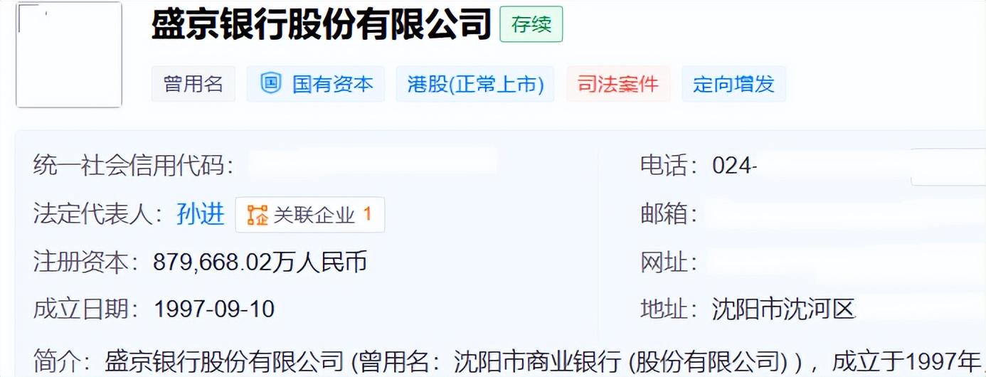 天眼查显示,盛京银行成立于1997年9月10日,注册资本87.97亿元,法定代表人孙进。盛京银行的前身是沈阳市商业银行,2007年2月经中国银监会批准更名为现名,是沈阳市国有城市商业银行。