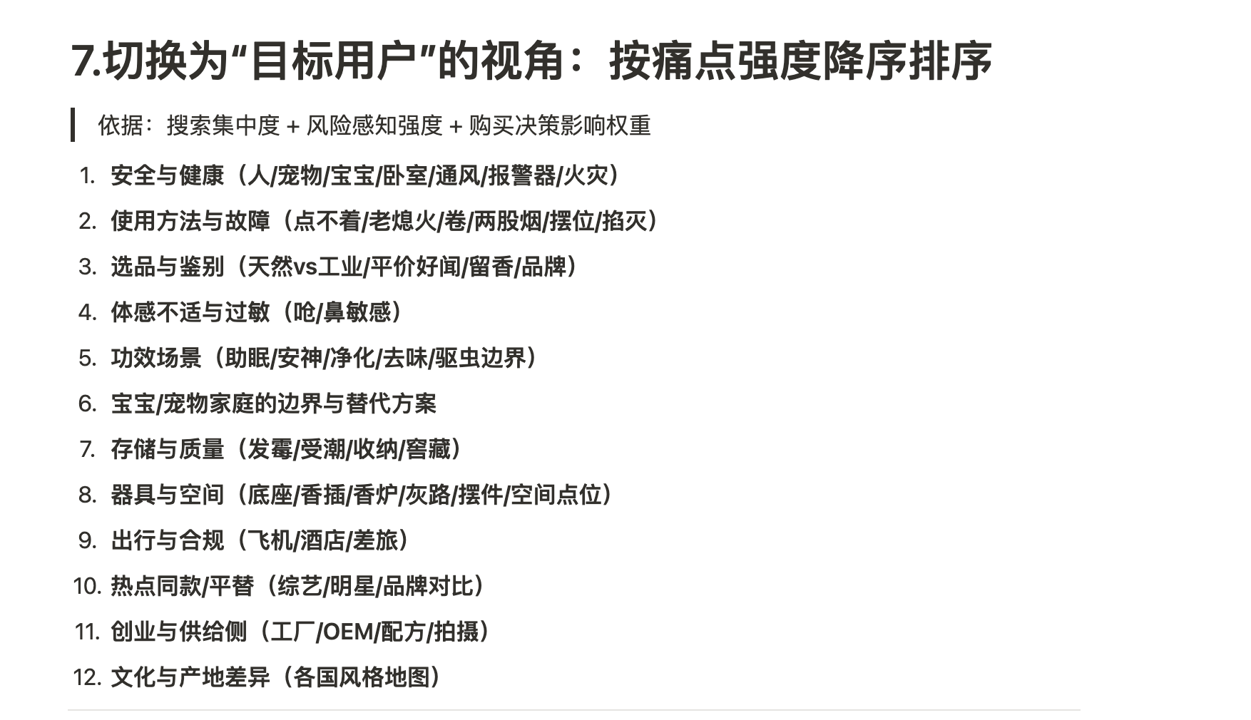 1.先思考这些关键词,反映了目标用户有哪些痛点;
