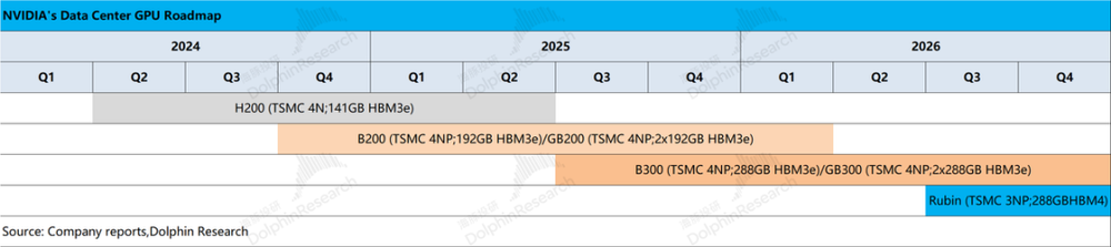 (b)Rubin产品进展:公司在3月就公布了后续的产品路线图,随着GB300进入量产,市场将一部分的注意力移到Rubin产品上。