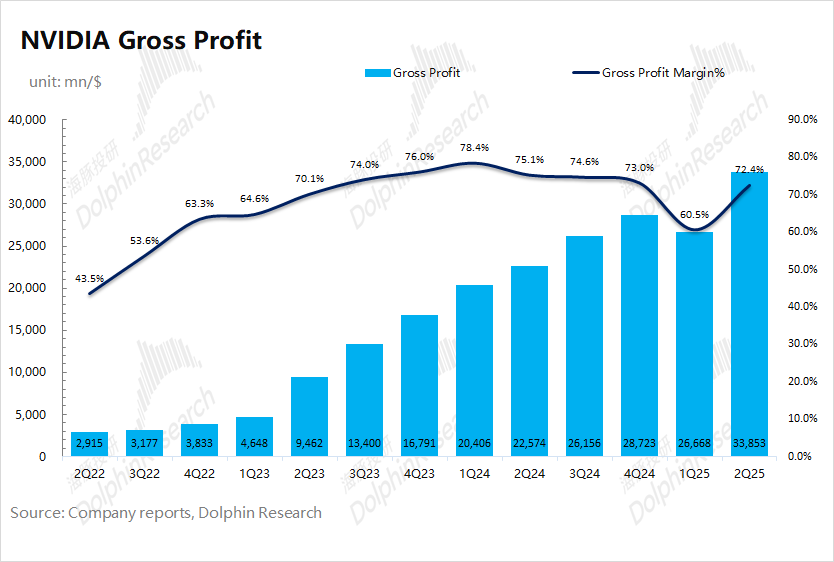 公司上季度毛利率出现明显滑落,主要是受H20芯片计提存货减值大约有45亿美元左右的影响。若剔除该突发事件影响,上季度的毛利率将在71%附近,本季度继续提升,主要是GB系列量产增加的推动。