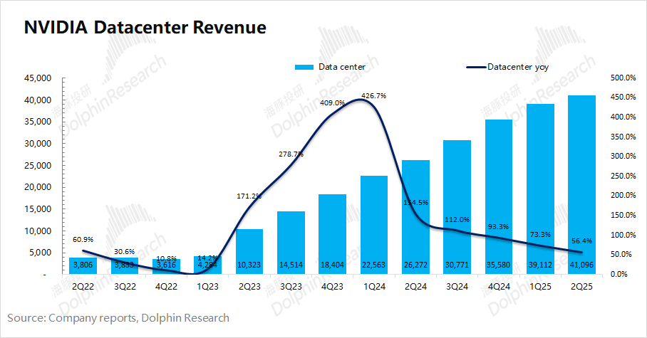 英伟达数据中心业务的核心驱动点仍然是云服务厂商对AI服务器的需求。2025年第二季度,四大核心云厂商的合计资本开支达到958亿美元,同比增长64.4%。
