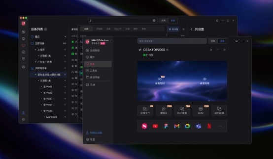 常用设备较少时,可一键直达远控,快速使用远程摄像头、CMD等功能,或是一键启动超级桌面,实现远程应用本机无缝融合运行;