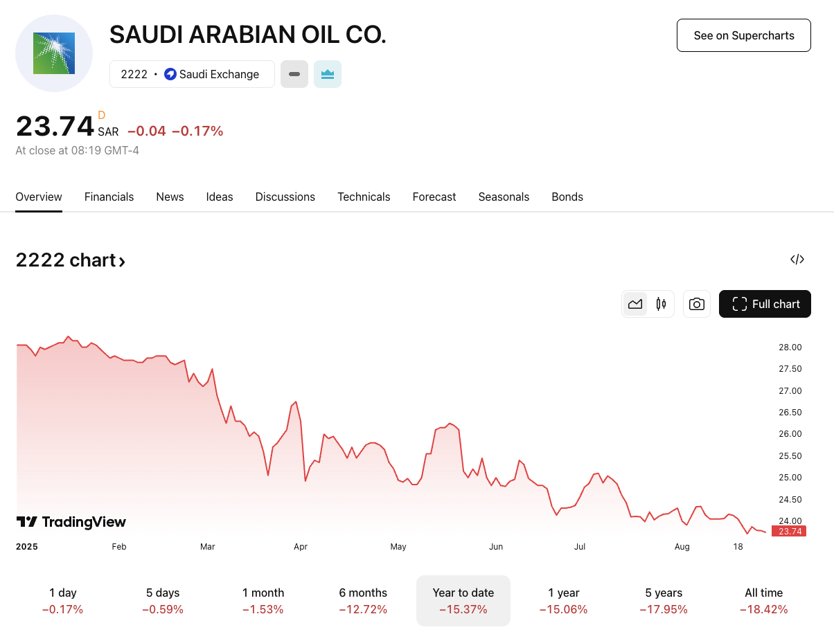 沙特阿美是全球成本曲线最靠前的综合油气公司之一,储量巨大,拥有低成本、长寿命的底层竞争力。但是今年以来,沙特阿美股价一直跌跌不休,其中一个原因是它估值太贵了。即使跌到今天,沙特阿美的25财年前瞻PE也有15×(股息率约 5.5%)。