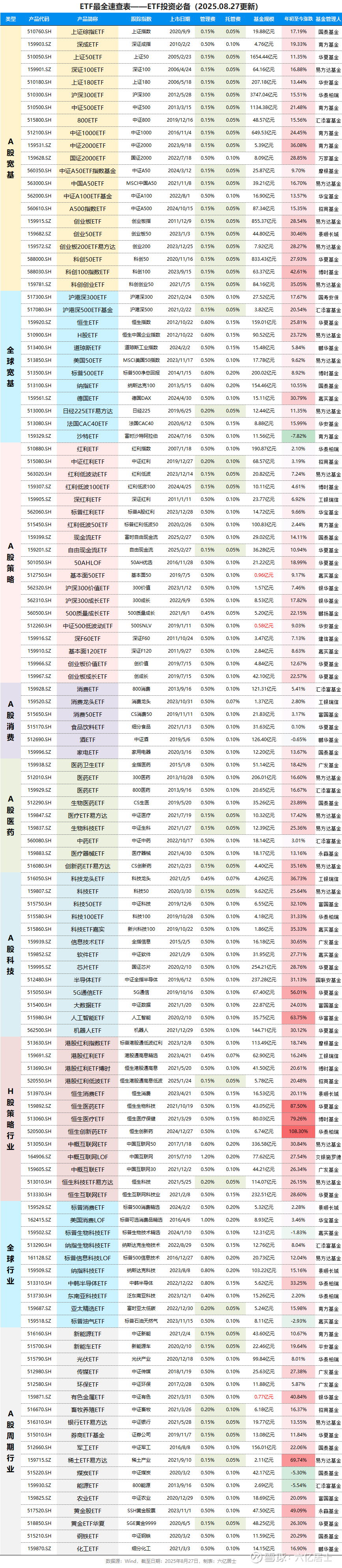 今天给大家带来一份极具收藏价值的《全市场ETF速查表》,表内一共收录了122个代表性的权益类ETF产品。