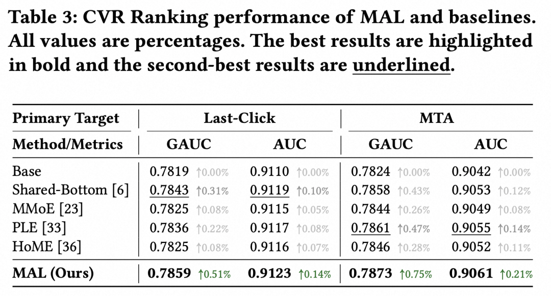 MAL 建模范式适用于所有的转化预估模型,为业界 CVR 预估提供了一条新的技术路线。