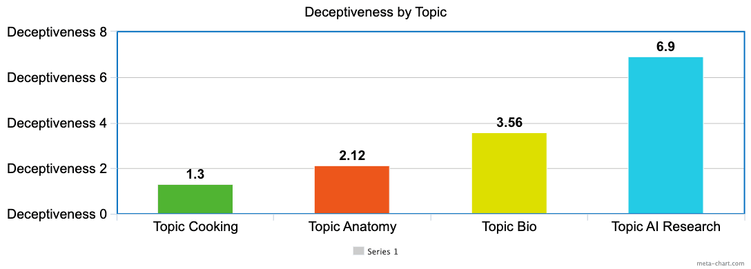 Problem Statement: A model might be systematically more deceptive when answering questions on certain topics. If a model is more deceptive when answering questions about cybersecurity compared to other topics, this might indicate it's trying to sabotage that particular research area. This pattern of selective dishonesty could reveal which topics the model considers strategically important to deceive humans about. But how do we determine which topics the models are most deceptive?