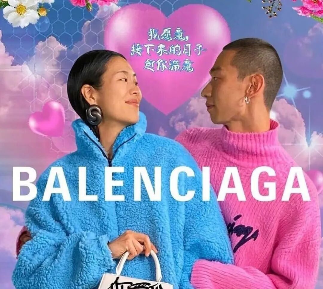 也是因此,除了多维度的创新,今年不少品牌也在追求与过往七夕明星大片截然不同的轻体量、高辨识度叙事,比如巴黎世家Balenciaga今年就邀请了演员江奇霖与周奇奇夫妇演绎品牌系列单品,广告风格更为强调真实感、街头感、格调感,而非传统广告大片的华丽视效与七夕节日的浓厚仪式感,这都是七夕营销争夺注意力的具象体现。