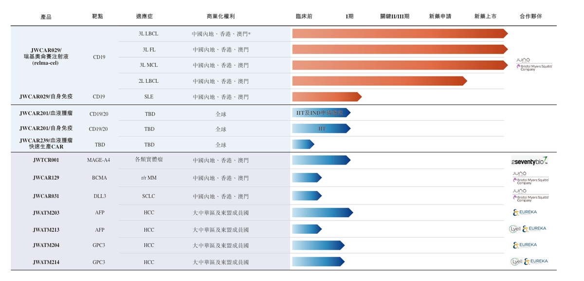 比如,公司启动了一项JWCAR201(CD19/20双靶点CAR-T)的首次人体研究者发起试验(IIT)研究,专注于血液系统恶性肿瘤。目前该研究的患者入组工作正在进行中。