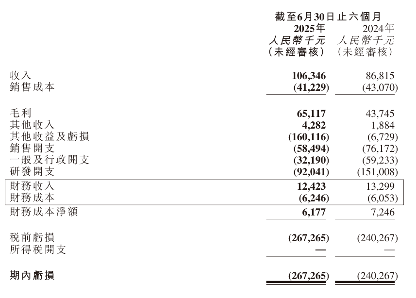 典型例子就有药明巨诺。近日该公司发布的财报显示,今年上半年实现收入1.06亿元,同比增加22.5%;期内公司亏损同比扩大至2.67亿元。