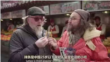 2016年2月份,BBC拍摄了3集关于“中国新年”的纪录片,片中的两位主持人在典型的中国小吃街(Chinese snack street)上闲逛(roam),手里提溜着辣条。其中一位说出了为辣条的“第一网红”地位奠基的那句话。