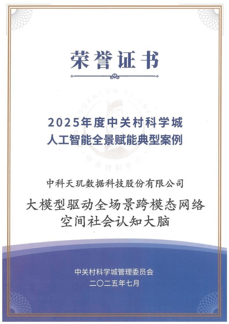在这场以“AI+城市:数启新纪元”为主题的高规格盛会上,中科天玑数据科技股份有限公司自主创新研发“大模型驱动全场景跨模态网络空间社会认知大脑”,荣登“2025年度中关村科学城人工智能全景赋能典型案例”榜单。这不仅是对中科天玑“场景驱动创新,AI拓展边界”理念的生动诠释,更是标志着社会认知计算在未来智慧城市建设中开启全景赋能新篇章。