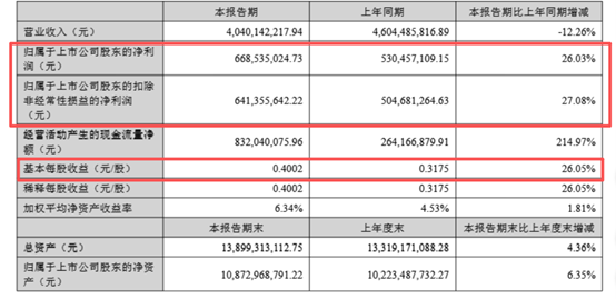 财报显示,以岭药业实现营业收入40.40亿元,扣非净利6.41亿元,同比增长27.08%,实现强劲增长,盈利能力显著修复。每股收益(EPS)为0.4002元,同比增长26.05%,盈利改善明显。