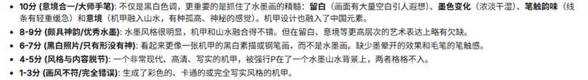 对于水墨风的机甲,则可能是AI背后的数据库在发挥作用。如果数据库中有大量“水墨”、“机甲”等高质量的标签,降噪过程也会被顺利引导至一个高质量的概率空间。
