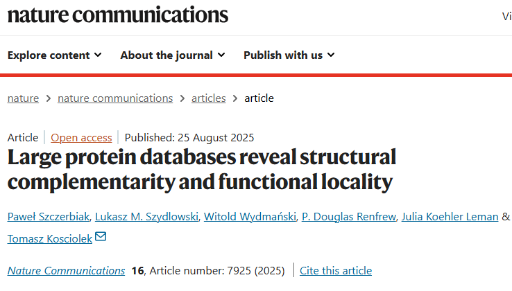 Szczerbiak, P., Szydlowski, L.M., Wydmański, W. et al. Large protein databases reveal structural complementarity and functional locality. Nat Commun 16, 7925 (2025).