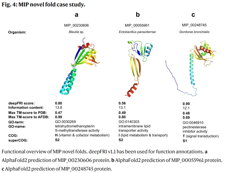 MIP 中的新型折叠虽然在结构上前所未见,但多数仍可被注释为已知功能。研究人员发现其中一些蛋白与代谢、脂质转运或细胞壁调控相关,提示新结构可能为已知功能提供新的结构解决方案,而非完全未知的功能。