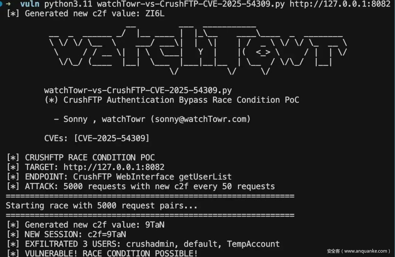 安全研究机构 watchTowr Labs 发布了针对 CVE-2025-54309 的详细分析报告。该漏洞是跨平台文件传输服务器 CrushFTP 中的一个 零日认证绕过缺陷,已被攻击者在野外利用。漏洞源于 HTTP 请求处理中的竞争条件,可使远程攻击者绕过验证并获得完整的管理员控制权限。