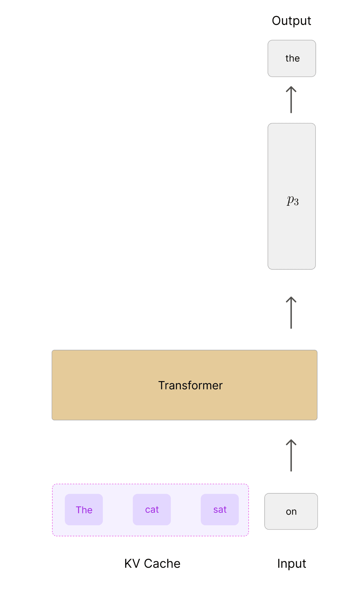 Usually when we interact with an LLM such as ChatGPT, it’s in inference mode. This means that the model is not learning and is optimized for outputting tokens as efficiently as possible. This process is autoregressive: the model generates one token at a time, appends it to the input, and uses the new, longer sequence to generate the next token.