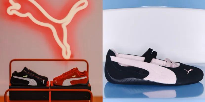 还有另一款芭蕾鞋(Speedcat Ballet),外形堪称“奇妙混合体”,既有赛车鞋标志性的超薄鞋底和紧贴脚面的流线轮廓,但又被改造成了芭蕾平底鞋的形态——没有鞋带,一脚蹬入,脚背上还横着四根松紧带。由于造型奇特,与YEEZY洞洞鞋(Foam Runner)、KEEN登山鞋(JASPER)等一起被评为丑鞋代表,却意外受到中产群体的追捧。