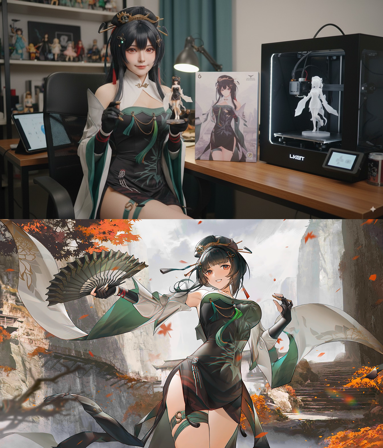 既然转手办很火、动漫转真人也很火,那动漫图转真人Cosplay 展示手办呢?