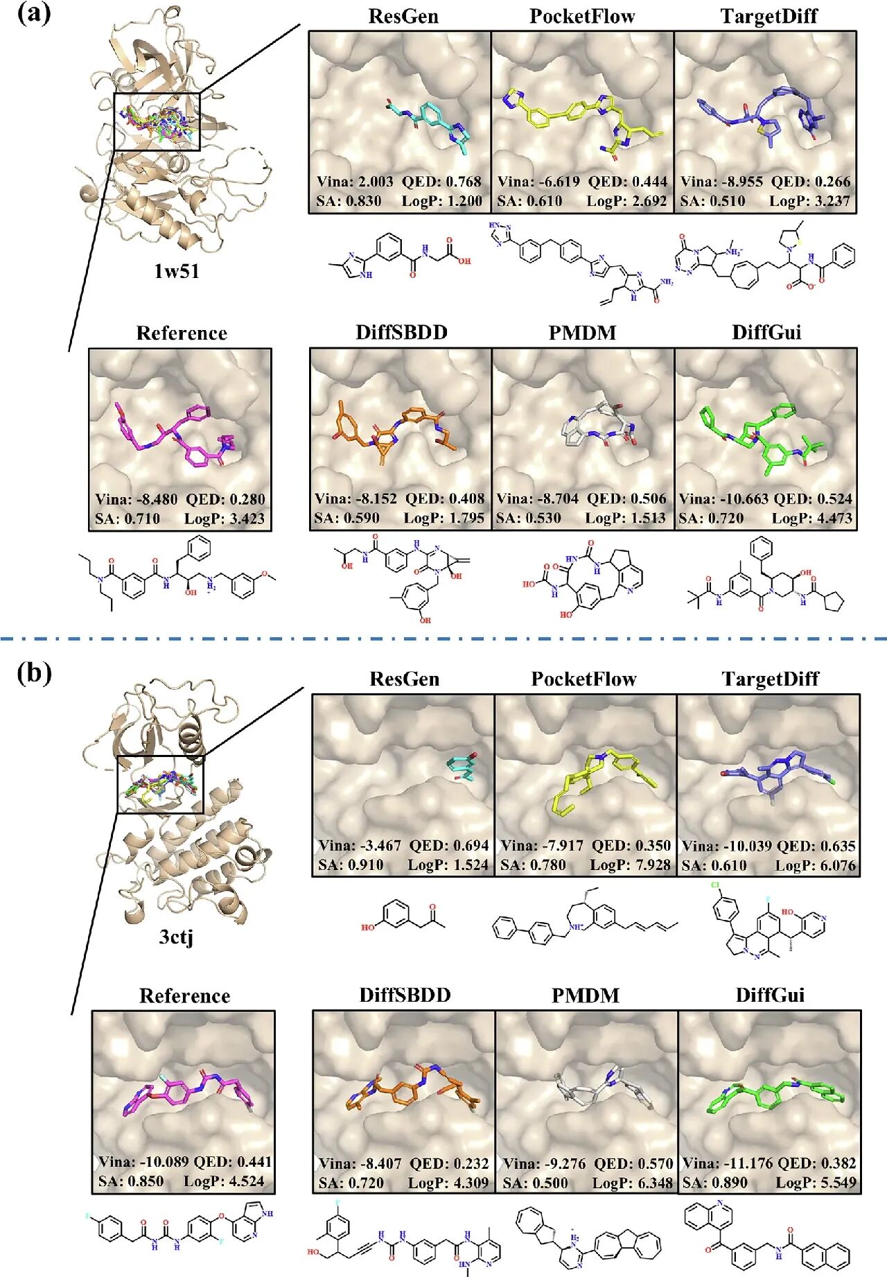 针对靶点1w51和3ctj的生成分子展示[1]图5