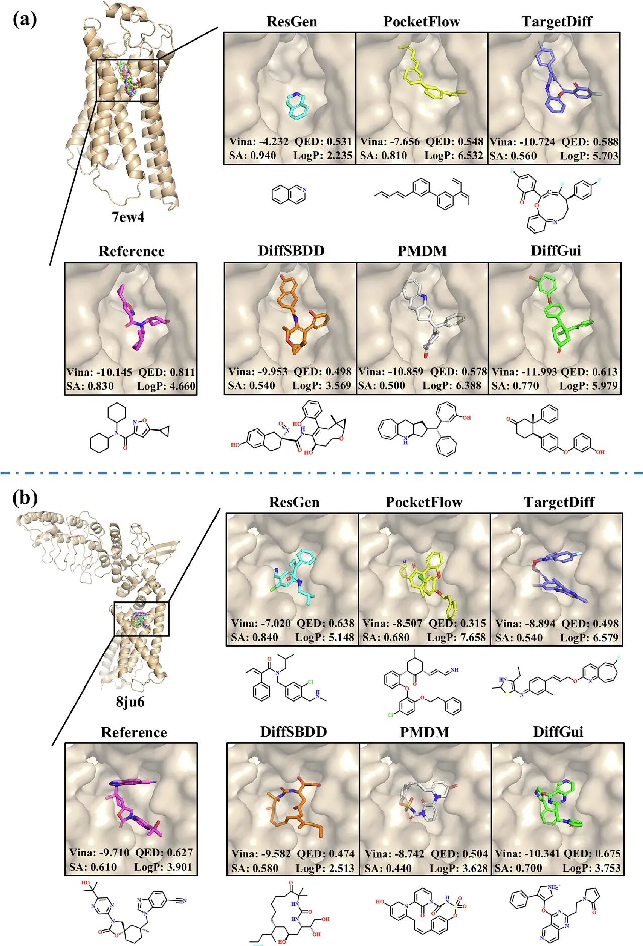 针对靶点7ew4和8ju6的生成分子展示[1](2). 先导化合物优化