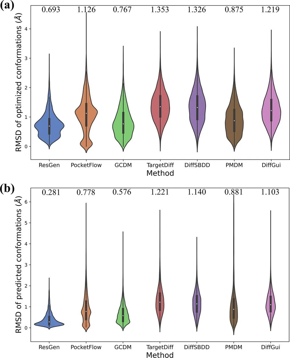 生成分子与优化/预测构象的RMSD分布[1]3.