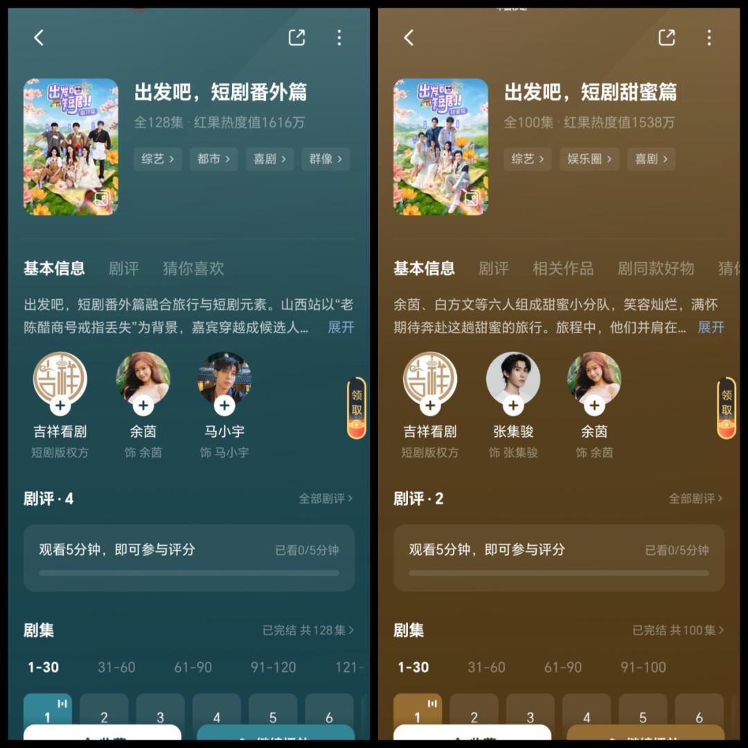 不同于现有的综艺内容体系的边拍边播,每期更新的形式。 目前无论是红果还是ReelShort推出的微综艺均是全集上线。