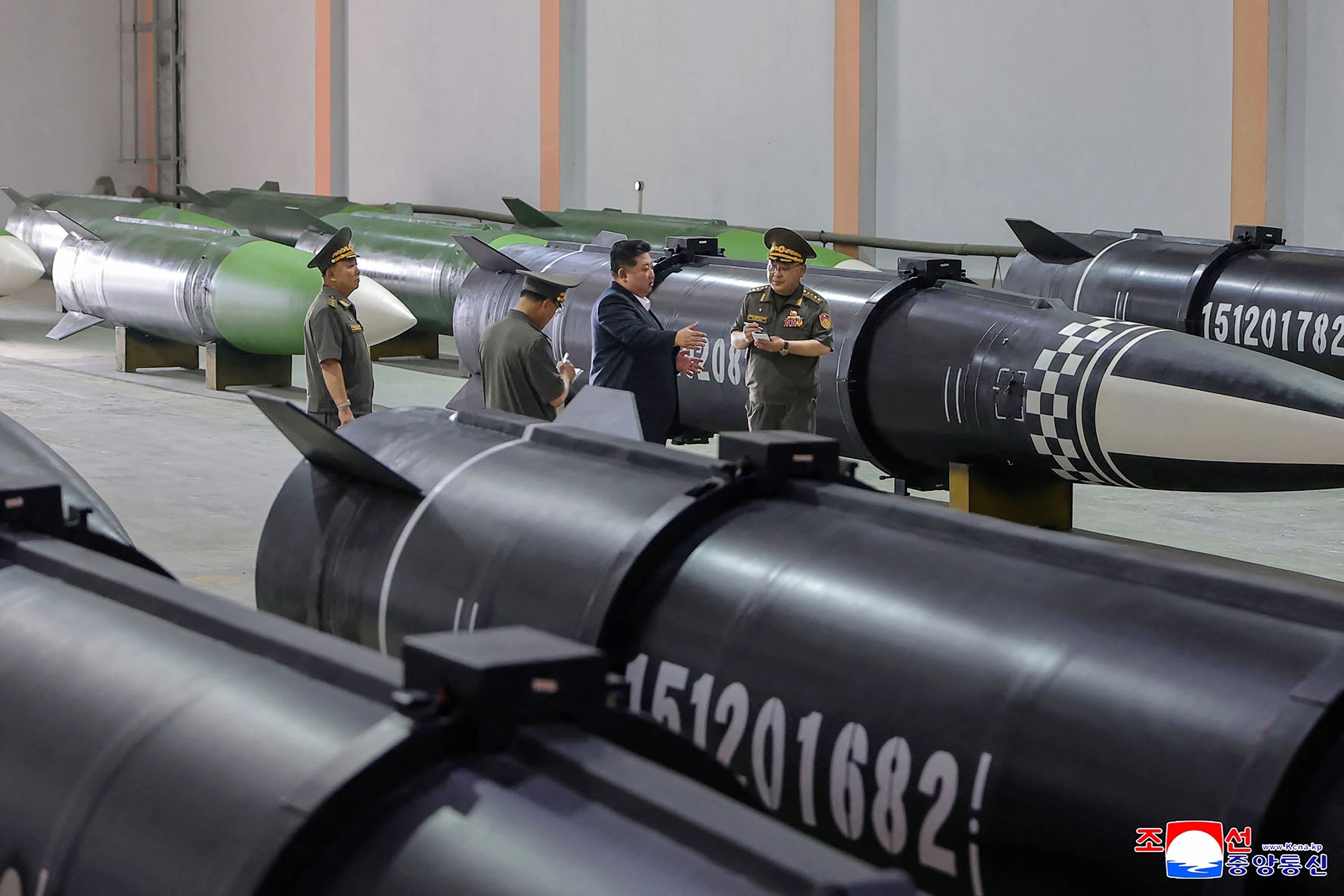 朝鲜最高领导人金正恩视察一家军工企业的导弹生产线。8月31日,朝中社报道称金正恩当天视察一家主要军工企业新投产的导弹自动化生产流水线。金正恩在视察中对朝鲜「导弹产能扩大计划」圆满完成、各类型导弹投入量产表示满意,强调建成现代化生产线能满足朝鲜人民军对导弹武力的需求,为重要部队按计划扩充导弹储备提供保障。韩联社报道称金正恩预计将于9月1日晚乘坐专列启程赴华出席中国抗战胜利80周年纪念活动。摄影师:KCNA
