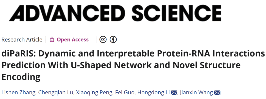 Zhang L, Lu C, Peng X, Guo F, Li H, Wang J. diPaRIS: Dynamic and Interpretable Protein-RNA Interactions Prediction With U-Shaped Network and Novel Structure Encoding. Adv Sci (Weinh). 2025 Aug 29:e06314. doi: 10.1002/advs.202506314