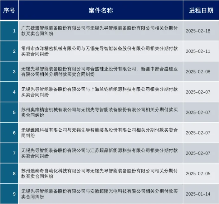 今年1至2月,先导智能在无锡法院一口气起诉了9家客户,案由全部是“相关分期付款买卖合同纠纷”。这些被告席上的客户包括合盛硅业、瑞普兰钧等知名企业,唯独没有宁德时代,实际上宁德时代的欠账是最多的。